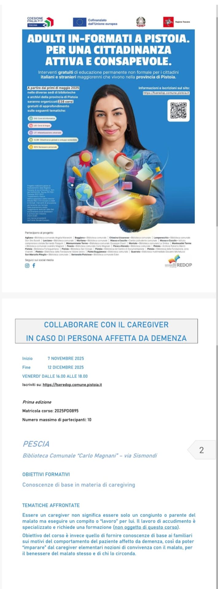 Prenotazioni al link: http://fseredop.comune.pistoia.it