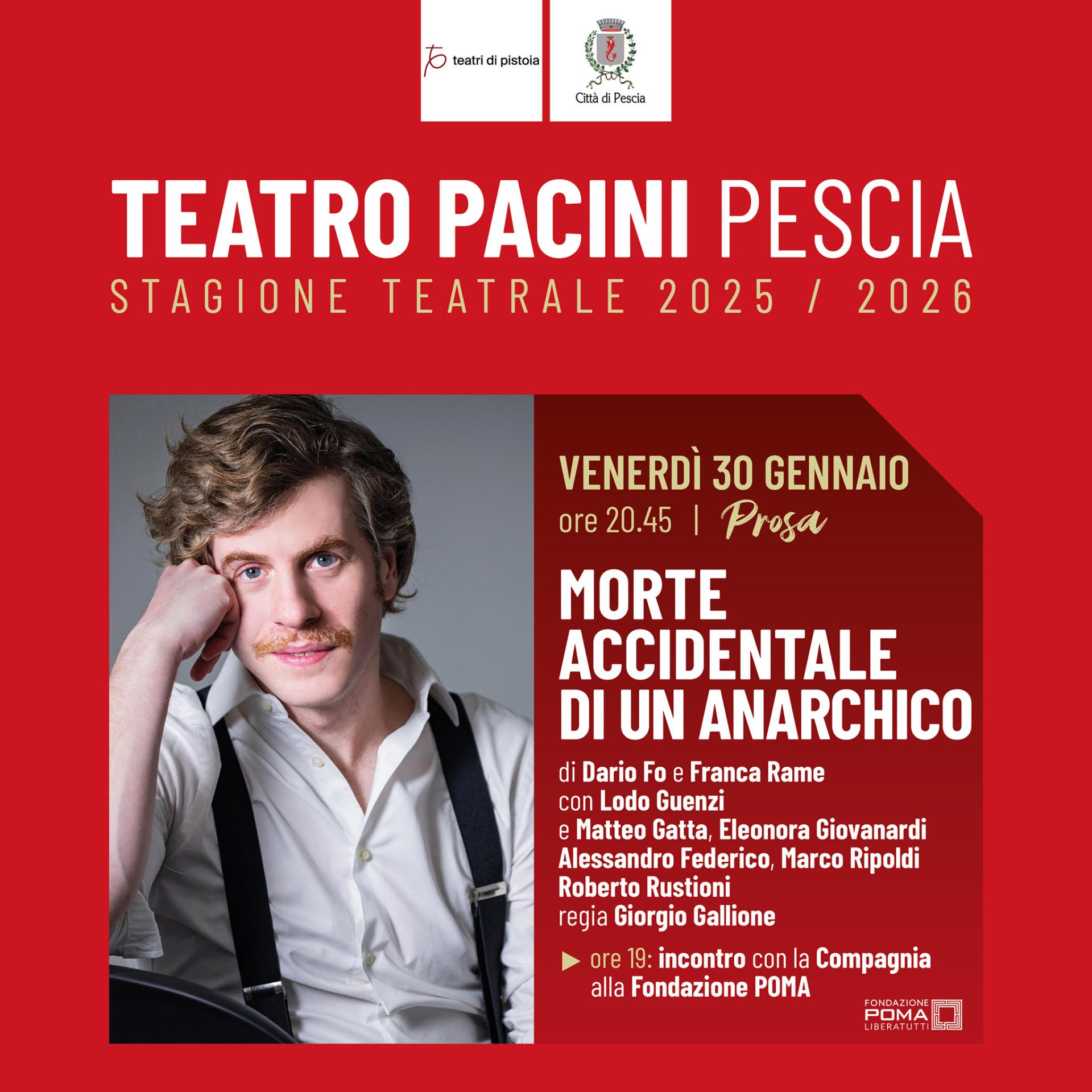 I biglietti sono in vendita anche alla Biglietteria del Teatro Manzoni di Pistoia (0573 991609-27112).