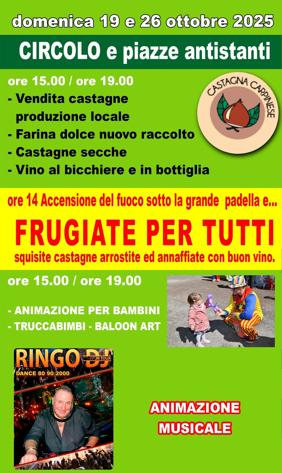 Alle ore 14 di entrambe le domeniche,  verrà acceso il fuoco sotto la grande padella e...frugiate per tutti ! Squisite castagne arrostite e annaffiate con buon vino.